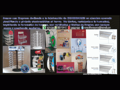 Medidas y colores según las necesidades del cliente. EXHIBIDORES para golosinas, snacks, gaseosas EXHIBIDORES para revistas y periódicos. EXHIBIDORES para colgar. Artículos para el Hogar: Verduleros, Cajones, Cestas para ropa, Escurridores de platos y vasos, Repisas, Jabonería, Basureritos, Canastillas para artículos de limpieza. Colgadores de Ropa, varios modelos, Canastones para ropa Soportes
